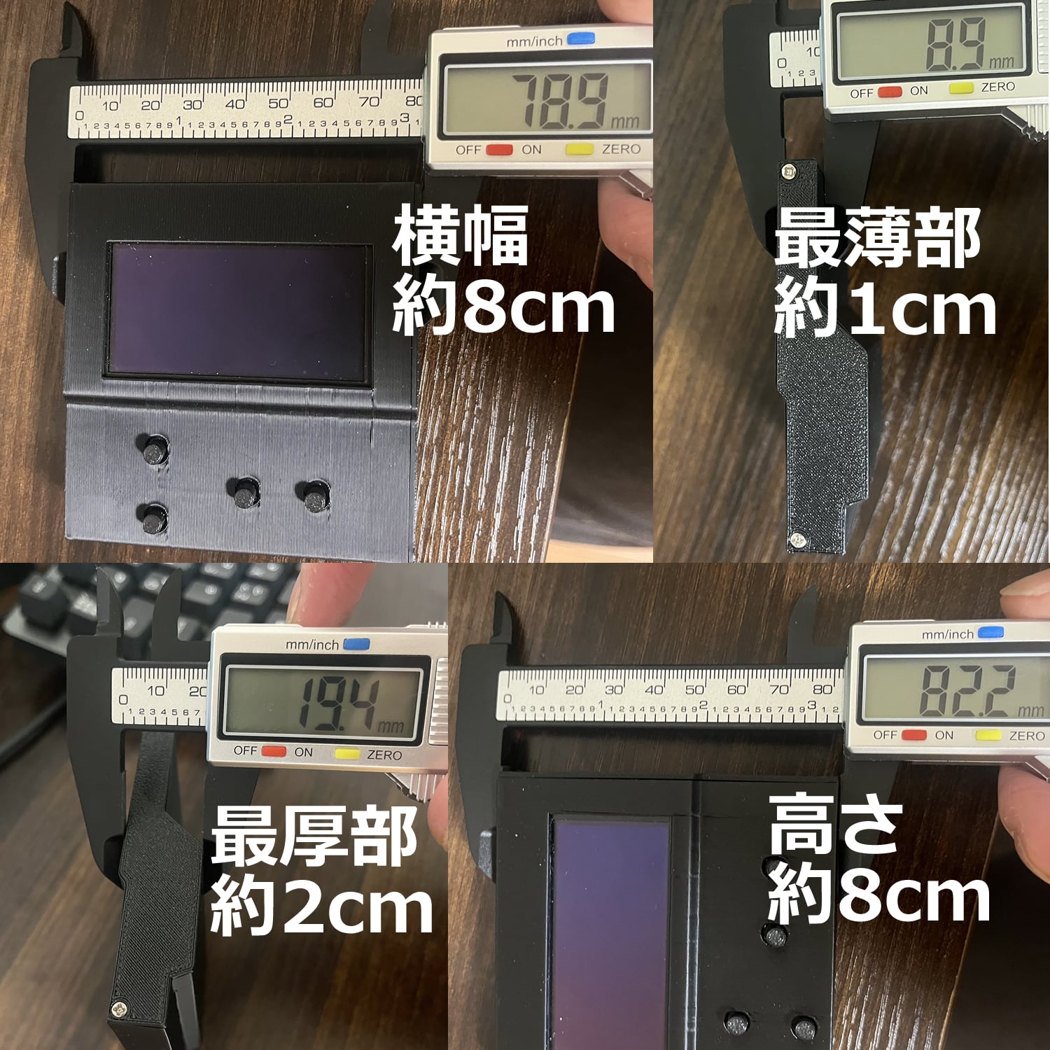 ※本体ケースに3Dプリント樹脂(PETG)を使用しています。PETGは高温で変形リスクがあります。夏季の車内(直射日光下のダッシュボード等)は高温となる場合があるため、車内放置を避け、使用後は日陰へ移すなどの対策をお願いします。高温による変形・外観変化は保証対象外です。